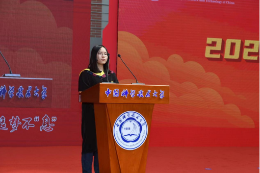 孟梦深情回顾了在母校留下的珍贵回忆,在科研上收获的累累硕果,并对未来的新征程进行了展望。她表示,无数个日夜辛勤工作和学术探索锻造了我们坚韧不拔的品质,让我们能够与时俱进,在不断变化的世界中保持竞争力和适应力,为建设一个更美好的世界贡献青春力量。