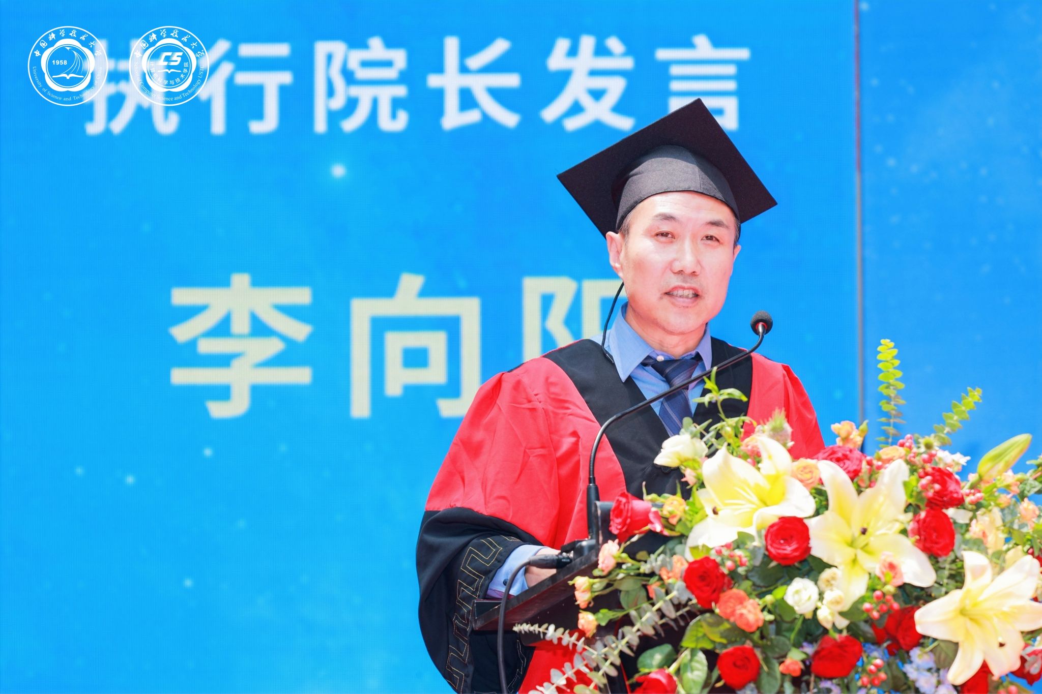 执行院长李向阳向毕业生们送出了热烈的祝福和真挚的嘱托。他勉励同学们应当投身于团队协作、社会服务中,不断自我完善。要将报效祖国的使命牢记心中,在担当国家富强,民族复兴的时代使命中铸就精彩人生,让世界听到中国智慧的声音;将自己的才智和能力注入到新领域、新技术、新格局的探索之中,致力于全人类的发展与进步。