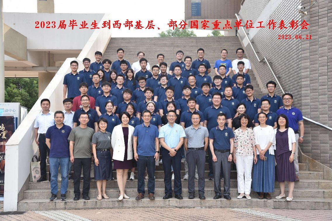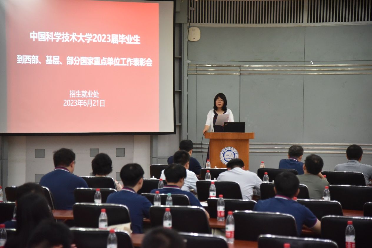 招生就业处副处长万洪英宣读了《关于我校2023届毕业生到西部、基层和部分国家重点单位工作予以表彰的决定》文件,对到西部、基层、部分国家重点单位工作的同学们予以表彰,并致辞感谢各职能部门对学校就业工作的指导和支持。