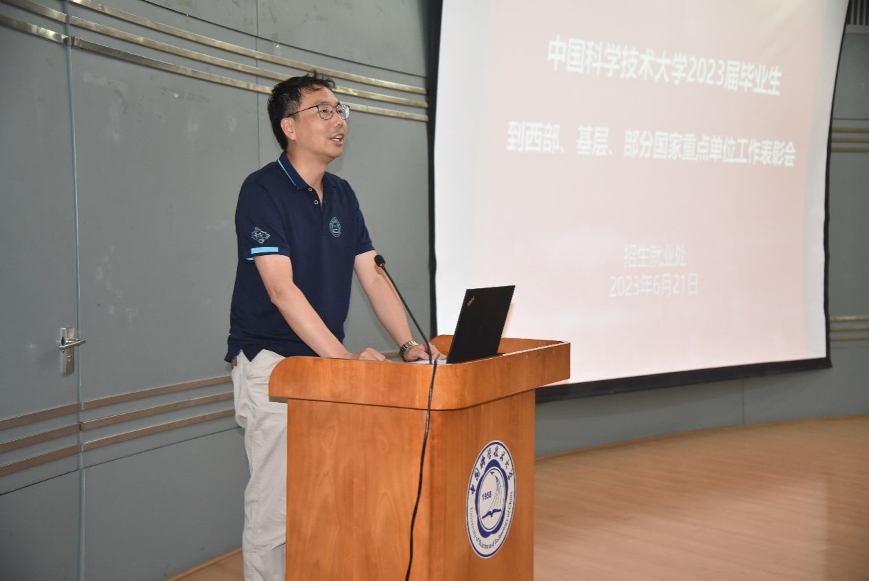 会议最后,副校长周丛照发表讲话。他指出,选择到西部、基层和国家重点单位就业不仅是对国家政策的积极响应,也是对我校“科教报国”精神血脉的赓续。他寄语同学们对日后的工作要抱有热情和激情,可以真正做到扎根基层,服务大地;发扬“不信邪,不怕鬼”的斗争精神,用不畏困难,乐于奉献的精神面貌彰显科大风采。在讲话最后,周丛照表示,母校永远是同学们的精神家园,欢迎大家常回来看看,也期待更多科大学子在人生的重大转折时刻汇入报效祖国的河流,以青春之名书写华彩篇章,不负韶华,不负祖国,不负人民。