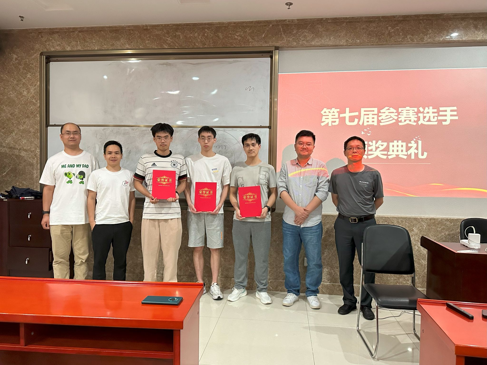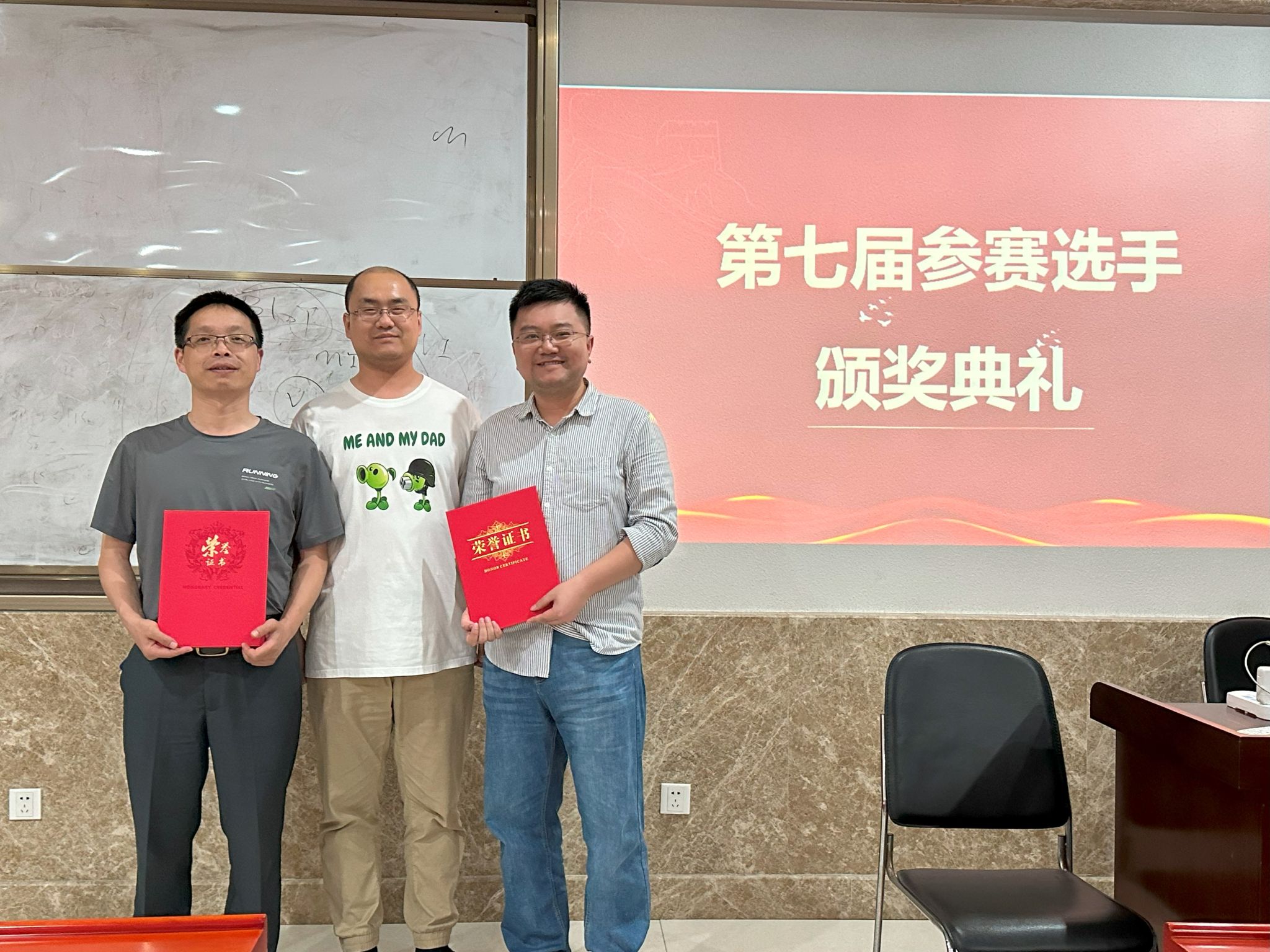 接着,郭晓龙为第七届优秀指导教师刘兵兵、姬翔和第七届参赛选手颁奖。