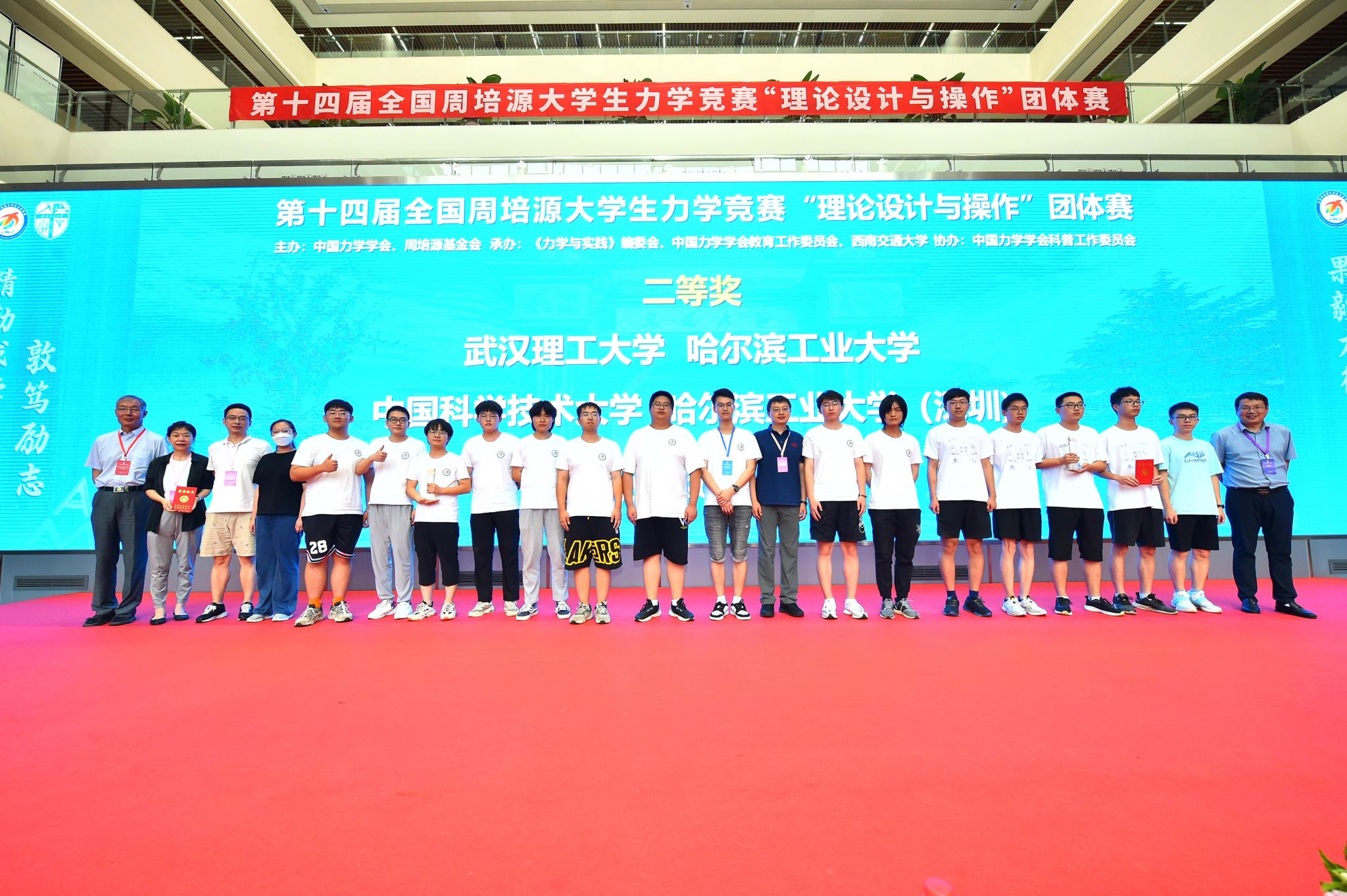 2023年8月16日至17日,第十四届全国周培源大学生力学竞赛“理论设计与操作”团体赛在西南交通大学犀浦校区举行。本次团体赛有全国47所高校所组成的46个代表队参加。经过两天四轮积分赛的激烈角逐,我校代表队在前两轮发挥不佳、暂居29名的不利情况下,后两轮奋力追赶,最终以总分第6的成绩完成比赛,荣获团体赛二等奖。