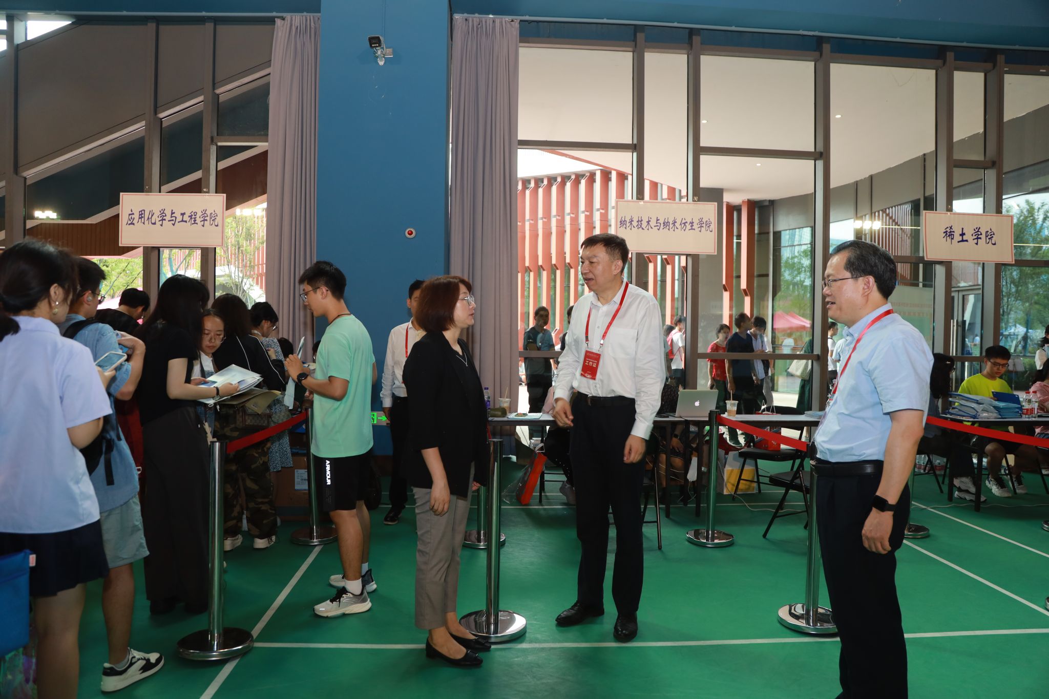 校团委、校芳草社等在各报到点设立多个志愿者接送点为新生提供咨询引导、行李看管等服务,研究生迎新志愿者共招募120人,东区4个点位28人、西区4个点位28人、中区3个点位18人、南区2个点位12人、高新区4个点位34人,所有同学按照上下午半天轮班。保卫处安排搬运车免费为新生搬运行李,校医院派驻人员提供应急医疗服务,饮食服务集团免费提供绿豆汤、菊花茶等消暑饮品。