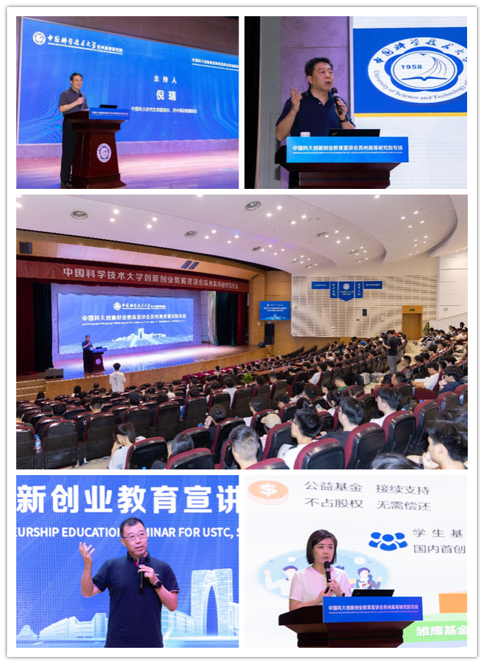 9月10日下午,新生们迎来了中国科学技术大学创新创业教育宣讲会。中国科大创新创业学院常务副院长朱东杰,苏州市双创服务中心负责人范凯,我校创新创业导师赵征、刘启斌、宋红彪,学生创业代表杨爱迪、马灿臻、陈乾以及300余名同学参加。宣讲会由研究生院副院长、苏州高研院副院长倪瑞主持。