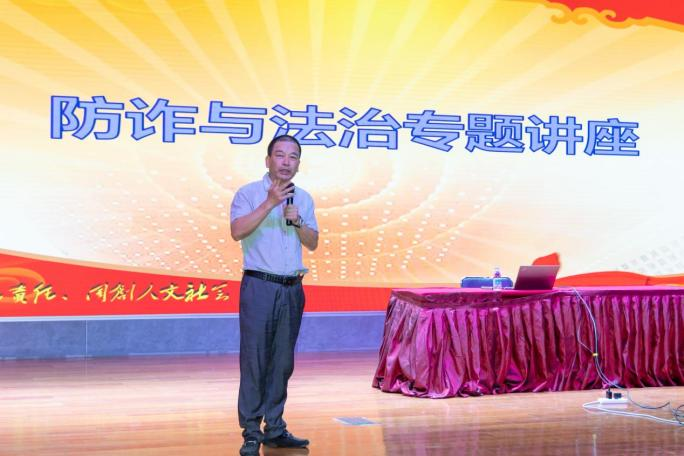 随后,苏州独墅湖科教创新区高校局副局长薛建明为同学们作《防诈与法治专题讲座》。他结合实际案例,生动详细地为同学们讲解了防诈防骗的各种情况,帮助同学们树立安全意识。