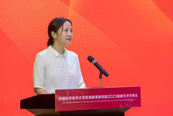 陈莉代表苏州独墅湖科教创新区致辞,她希望同学们肩负起时代赋予的伟大使命,借助苏州、工业园区一流的育才环境,在强国建设、民族复兴的伟大征程中挺膺担当、奋勇争先。