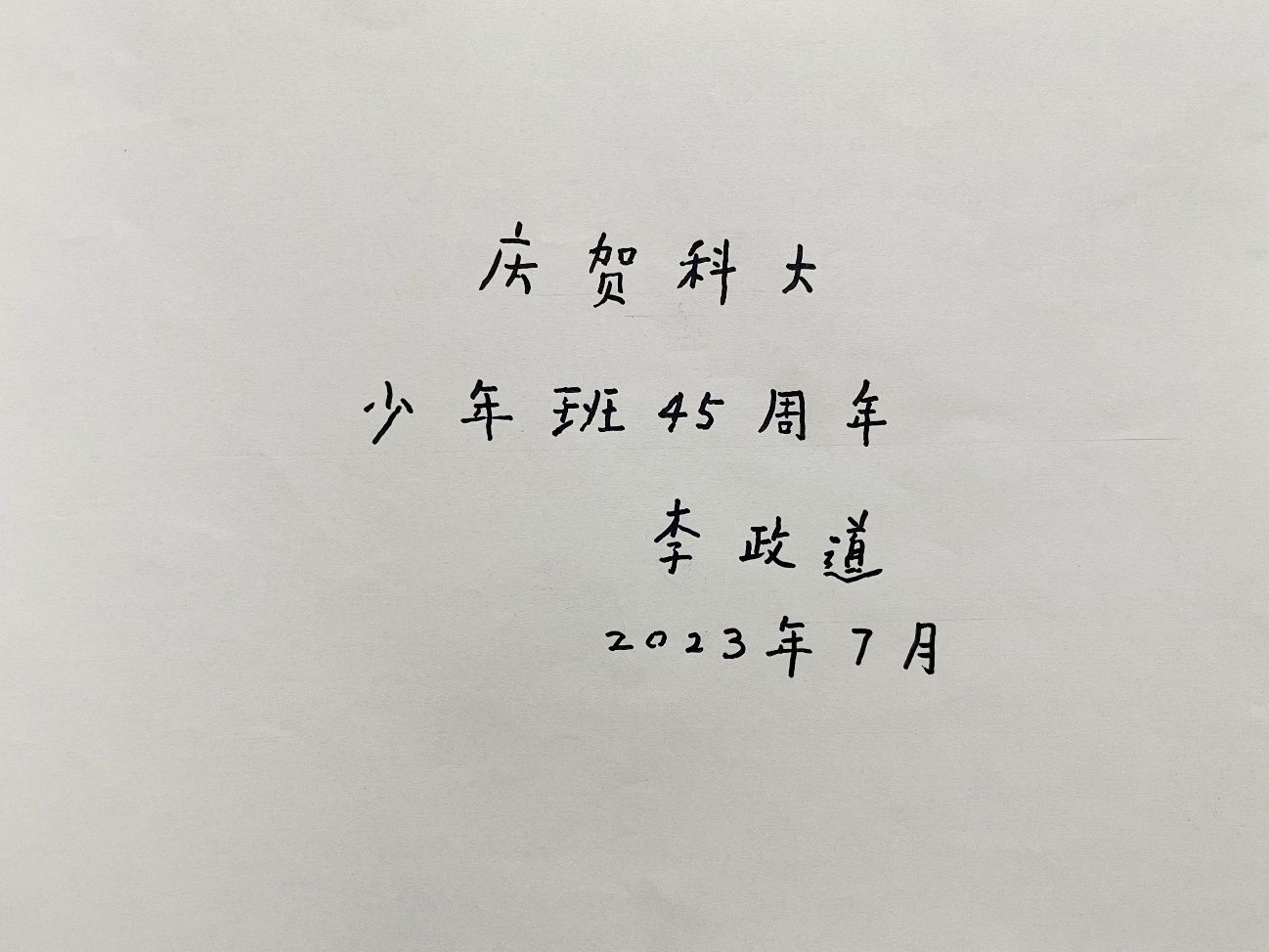 2023年,时值中国科学技术大学少年班成立45周年。李政道先生亲笔题词:“庆贺科大少年班45周年”。