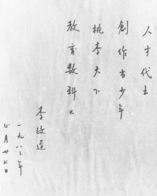 1978年,少年班成立后,李政道先生保持了一贯的关注和支持。他2次来校与少年大学生座谈,4次为少年班题词,蕴含了对祖国教育事业和青年一代的殷殷期盼。