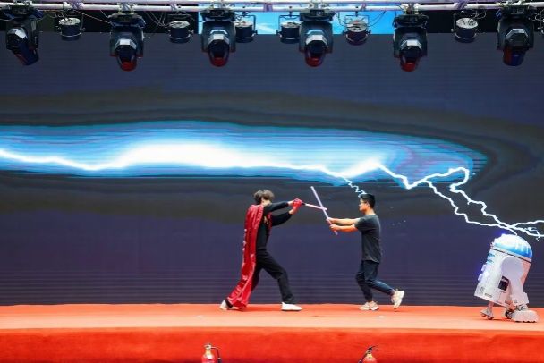 展示组队伍的比赛穿插在几轮竞技组比赛之间,依次上台展示各自设计制作的机器人。其中,“R2D2的润滑剂队”制作的R2D2机器人与队伍成员的展示表演十分精彩,毫无悬念夺得展示组冠军。
