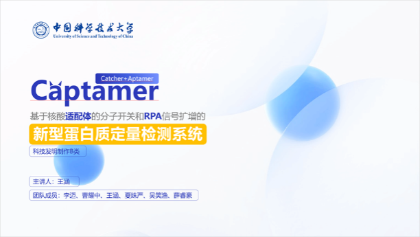 蛋白质的定量检测技术在临床诊断上具有重要的作用。但如今市场上的蛋白质检测技术具有时间长、检测精度低等问题。本项目基于核酸适配体的分子开关和RPA扩增反应实现了高精度蛋白质定量检测。Captamer具有高灵敏度、短响应时间、低成本和简单性等优点,其用于SARS-CoV-2核衣壳蛋白检测,可在30分钟内从样品中获得结果,显示了从0.2 pg/mL到200 pg/mL的宽检测范围和高特异性,与目前最常用的ELISA对比实现精度十倍提升。