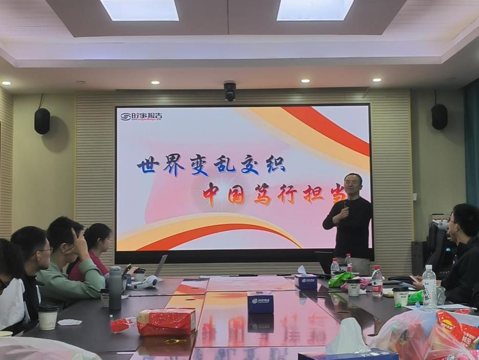 沙龙最后一个阶段是社会热点话题研讨。范煜作题为《世界变乱交织,中国笃行担当》的形势与政策报告,介绍了当前变乱交织的国际形势,正在发生深刻调整的大国关系,以及我国向全球发出“三大倡议”的丰富内涵和时代价值。倪向贵勉励学生们把握机遇、勇于攀登,努力成为具有国际视野和民族情怀的优秀人才,为推动世界和平与发展作出自己的贡献。同学们围绕近期国际形势热点话题展开了讨论,并纷纷表示,通过交流研讨,大家不仅对世界局势有了更深入的了解,也认识到我们伟大祖国在国际舞台上的重要地位和关键作用。同学们表示要更加努力学习,提高自身素质,为中国的繁荣和发展贡献青春力量。