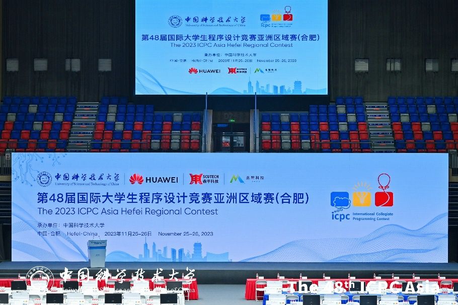 第48届ICPC国际大学生程序设计竞赛亚洲区域赛(合肥)于2023年11月25-26日于中国科学技术大学成功举办。本次大赛由ICPC国际大学生程序设计竞赛亚洲区委员会主办、中国科学技术大学承办,计算机科学与技术学院负责具体组织工作。共有来自清华大学、北京大学等172所高校的344支队伍和3支特邀的非正式队伍参加比赛。本次大赛共产生金奖36项、银奖68项、铜奖104项。