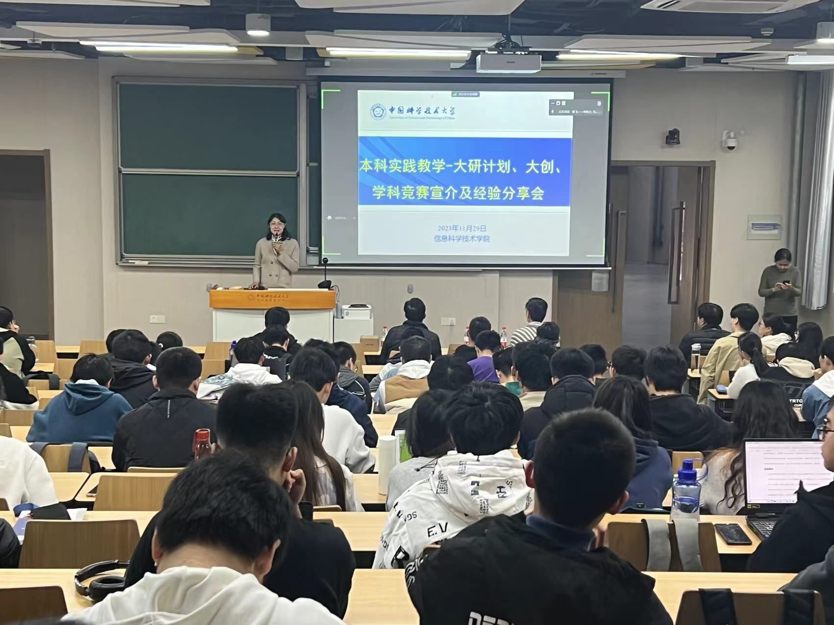 11月29号下午,信息学院于西区第三教学楼3C101教室举办2023年秋季学期本科实践教学宣介及经验交流分享会。活动邀请实践教学的优秀指导老师赵峰教授、张飞博士,教学秘书曹文萍老师和2023年大创校优获得者李锐渊、段梦通、李汶桓三位同学进行分享,由教学秘书沈翼老师主持。本次活动采用线上线下结合的方式,近两百名同学参加。