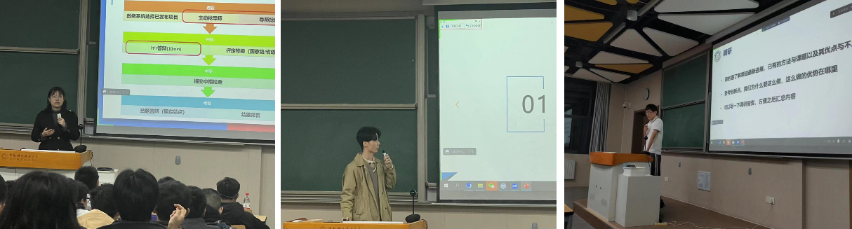 李锐渊同学分享了如何准备开题答辩,如何和导师交流,如何规划时间,如何平衡大创与学业,如何组建团队等方面的宝贵经验。段梦通同学分享了大创的好处、大创如何做的更有创新点、大创可能遇到的困难与解决方法方面的内容。李汶桓同学从调研、导师、项目开展、经费报销、成果与汇报和个人收获等方面进行了分享。