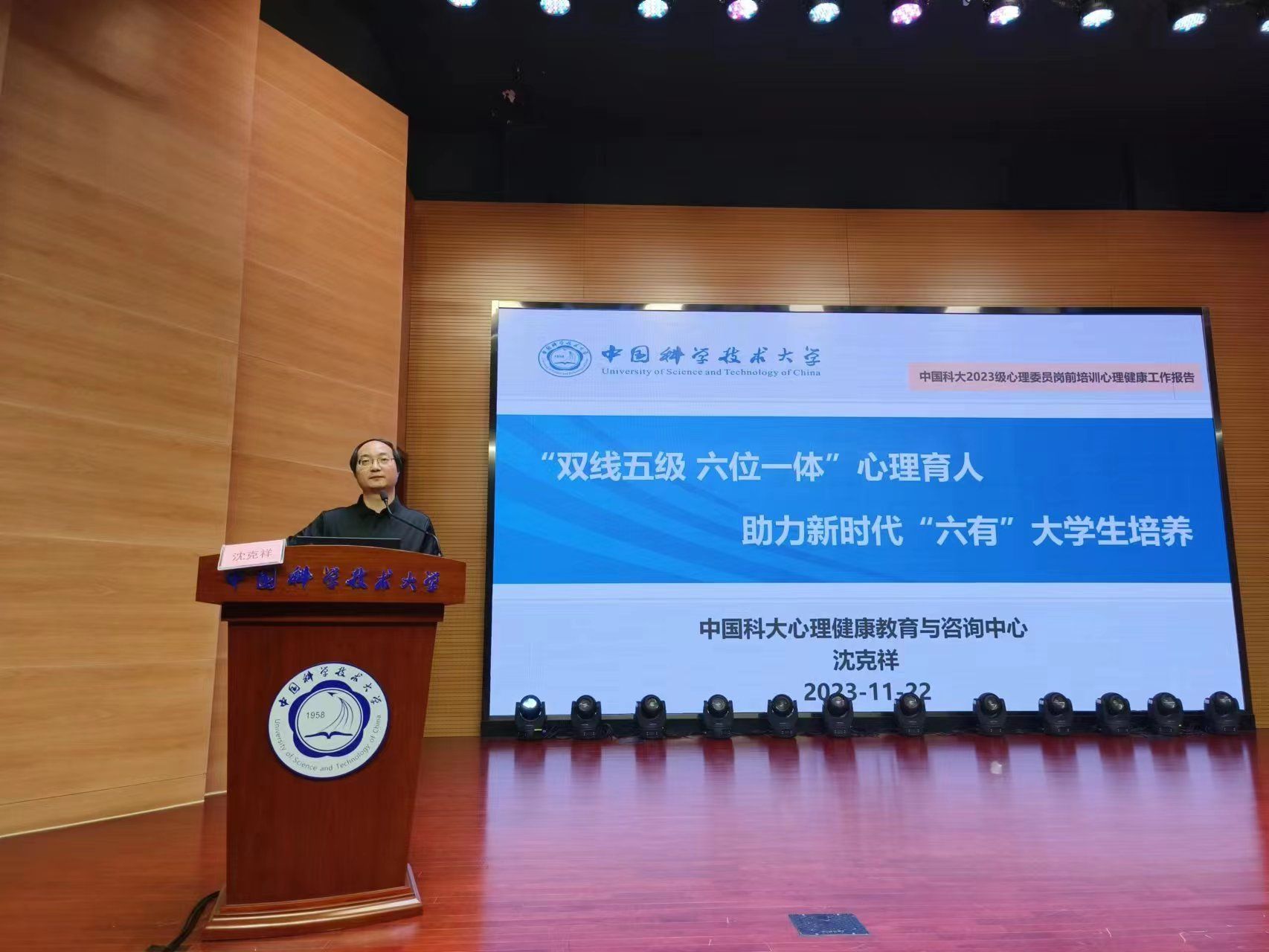 开班仪式后,沈克祥为全体心理委员作《“双线五级六位一体”心理育人,助力新时代“六有”大学生培养》首场专题报告。沈克祥强调,我校心理健康教育工作始终坚持健康第一原则,从中心发展历史、专业队伍建设、多元立体心理育人格局、文化宣教以及工作实效推广等方面详细介绍了我校心理健康教育工作情况。沈克祥希望每一位心理委员作为学校心理健康教育工作体系中的基础性环节,树立科学意识,明晰工作职能,苦练助人本领,服务广大同学,达到“因为自助而成长,因为互助而快乐”之目标。