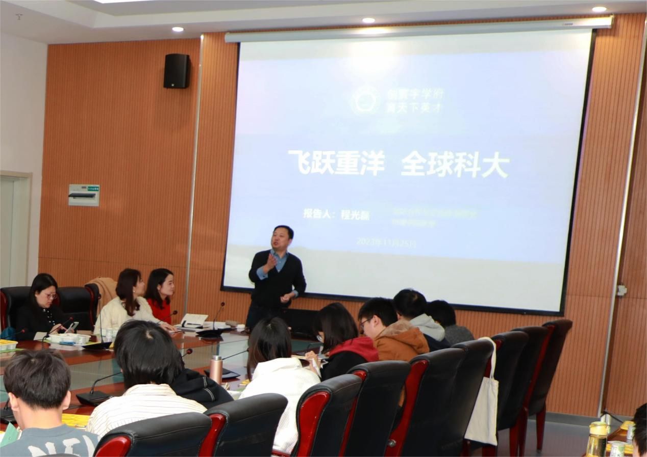 此次午餐会旨在帮助学生更好地了解出国(境)学习和交流的机会,为他们的未来学术生涯提供更广阔的视野。程光磊为同学们详细解读了出国留学的政策、申请流程、奖学金机会等关键信息,并分享了我校学生多个成功的留学案例,以此激发学生们的积极性和信心。