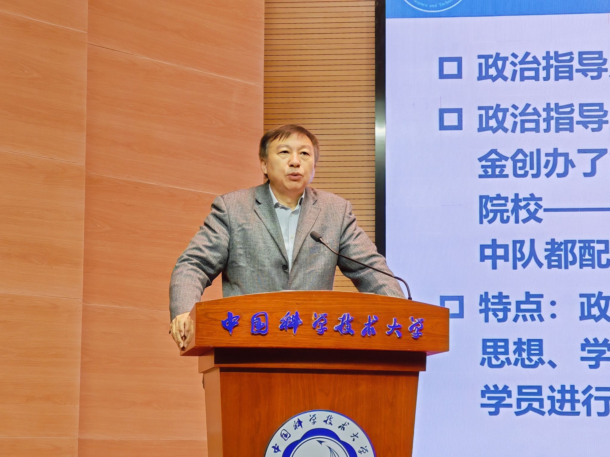 舒歌群回顾了我国辅导员制度的发展历程,指出辅导员是高校思想政治工作的重要力量。他强调,中国科学技术大学是为党和国家的重大战略需要而诞生的一所红色大学,要继承抗大精神、“两弹一星”精神和老一辈科学家精神,持续加强辅导员队伍建设,坚持为国家培养具有共产主义觉悟的尖端科学研究人才。