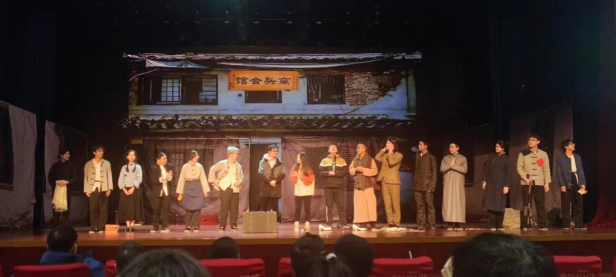 晚上7点整,近千名观众齐聚东区大礼堂。随着导演在对讲机中的一声“开幕”,舞台大幕缓缓拉开,《窝头会馆》专场正式开始。表演过程中,树之社各位演员用精彩的表演将观众们的思绪带到新中国成立前的北平,近距离观赏这场小市民的荒诞与温情并存的话剧。跌宕起伏、充满反转的剧情赢得了观众的阵阵掌声,现场气氛十分热烈。整场演出紧凑有序,观众们沉浸在演出之中,享受了一次难忘的视听盛宴。