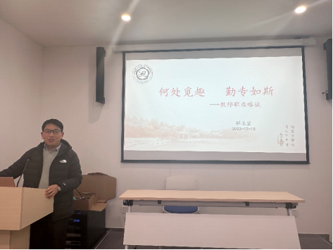 12月18日晚,马克思主义学院“前辈说”系列沙龙第三期在学院108室举办,中国科大附中高新中学校长助理解玉宝受邀作《何处觅趣,勤专如斯——教师职业略谈》主题报告,和大家分享他十余载的从教经历,面对面为同学们答疑解惑。本次活动由团总支书记黄鹤主持。