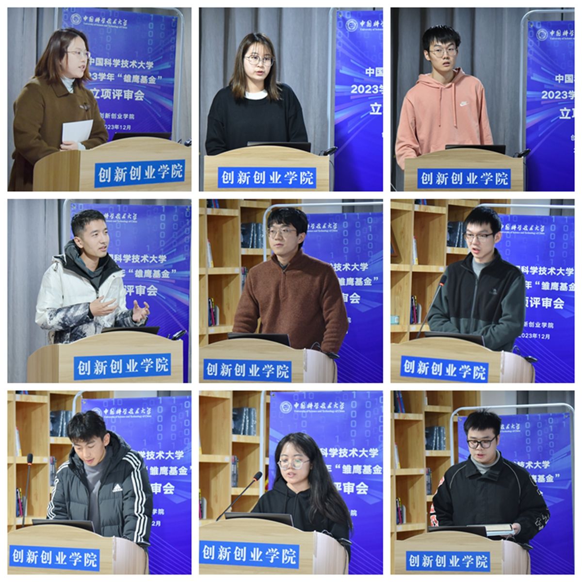 12月18日、19日,中国科大2023学年“雏鹰基金”“雄鹰基金”立项评审会在创新创业学院会议室召开,评审会采用线上线下相结合的方式,邀请了学校财务处、资产与后勤保障处等校内相关部门代表以及多位校外专家、双创导师代表,经过学生基金管理团队汇报、专家提问和投票表决,最终确定“中科阳光—利用第三代半导体氮化镓大规模太阳能光解水制氢”等63个项目作为我校2023学年“雏鹰基金”拟立项支持项目及“锂电守卫-高性能抗冲击锂电池隔膜”等45个项目作为“雄鹰基金”拟立项支持项目(项目名单详见学校主页公示:https://www.ustc.edu.cn/info/1364/20340.htm
