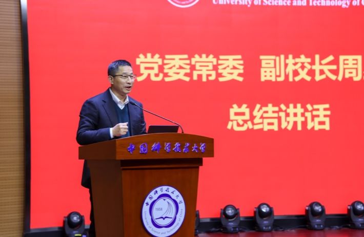 党委常委、副校长周丛照作总结讲话。他首先向获得表彰的集体和个人致以热烈祝贺,对大家的辛勤付出表示感谢。他指出,招生和就业都是学校人才培养的关键环节,招生就业战线上的广大教师们富有成效的工作,助力了学校一流本科教育质量提升。周丛照强调,招生工作要始终坚持科大特色文化价值,弘扬科学精神和爱国情怀,严守招生纪律,坚守价值底线;就业工作要充分发挥学工队伍支撑作用,引导学生重视就业,提前规划职业生涯,广泛调动学院、校友力量,积极拓宽就业渠道。最后,周丛照对广大教师们致以新年祝福,期待大家新的一年继续以积极的态度和饱满的热情投入工作,不断推动本科招生和毕业生就业工作的高质量发展。