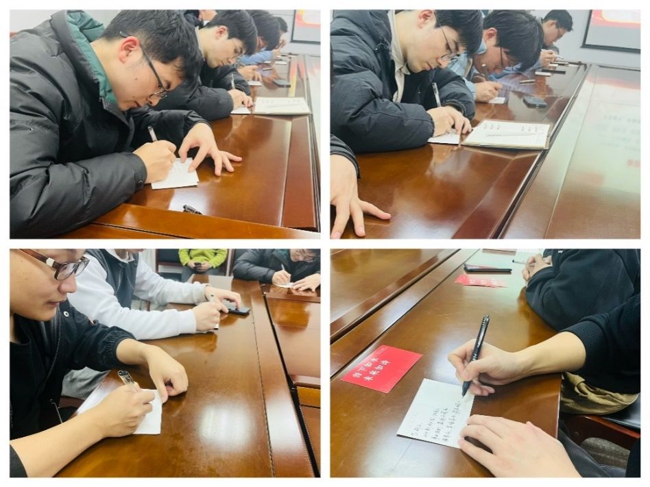活动最后,在支部书记施瑞琪的倡议下,全体党员执笔在明信片上写下自己对过去一年的回顾总结和对未来一年的新年寄语,支部成员之间也互相写下对彼此的祝福。这些文字记录了大家的心声,也让大家更加亲近。在这个活动中,大家感受到了团队的凝聚力和温暖,也更加坚定了自己的信念和方向。