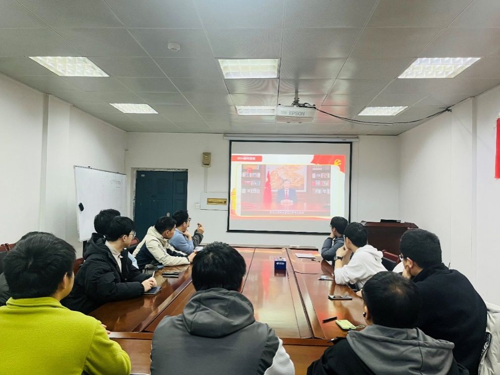 同志们首先集中观看了习近平主席二〇二四年新年贺词:“2023年,我们接续奋斗、砥砺前行,经历了风雨洗礼,看到了美丽风景,取得了沉甸甸的收获。”贺词中还强调要以更大力度办教育、兴科技、育人才,极大地激励研究生党员为实现中华民族伟大复兴的中国梦贡献新的力量。
