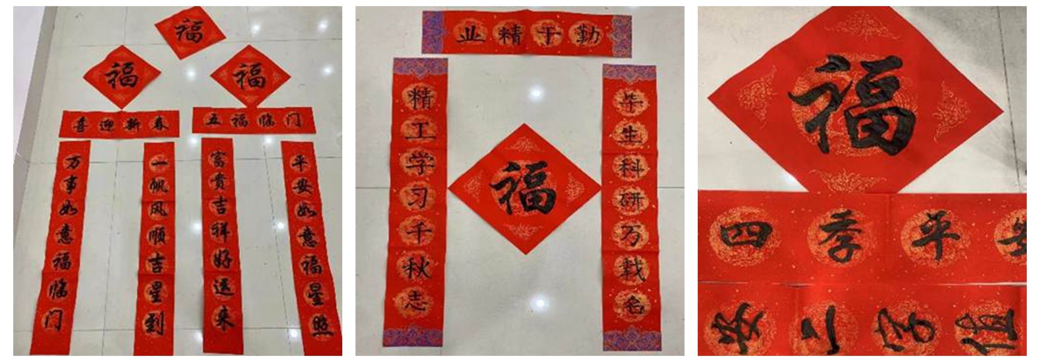 活动开始后,党员同志们全情投入,彰显了中国汉字书法的魅力。不同程度的毛笔字书写水平并没有阻挡同志们对春联活动的热情。有的同志流利地书写出寓意深远的对联,而有些同志则在临摹春联时,一遍遍地润色纠正,力求将自己最好的一面展现出来。书写完毕后,同志们纷纷将自己的春联摆放整齐供大家欣赏,每一副春联呈现在大家眼前,充分体现了对新年的美好祝愿。