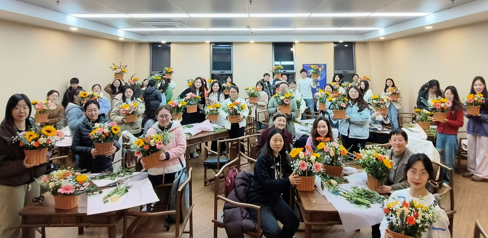 分享环节结束后,在场师生一起参与了插花活动,同学们与老师们自由交流,陶冶心灵,感受插花艺术之美,现场氛围温馨融洽。