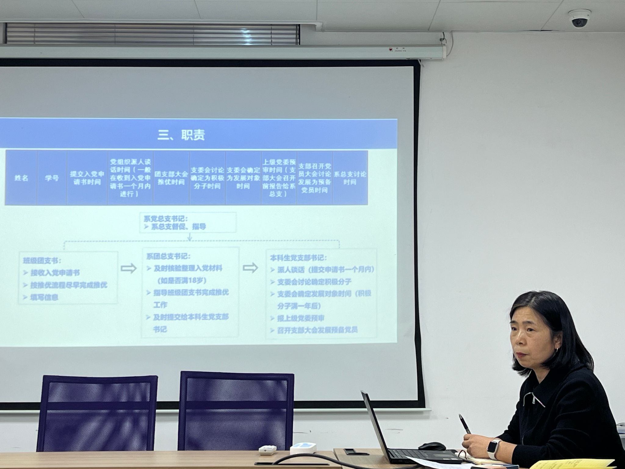 随后,朱芸对推优入党工作相关流程作了基本介绍,并就推优入党等相关问题作了详细的介绍。