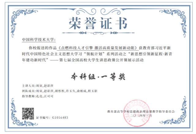 作品立足中国科学技术大学特色,并挖掘安徽本地的思想政治教育资源,巧用案例讲述老一辈科学家科技报国的生动事迹,深刻阐释了科技人才是推动高质量发展的引擎力量,力求用大学生喜欢听、听得懂、听得进的方式把思政课道理讲深、讲透、讲活,引导青年大学生与国家科技发展同频共振。在授课形式上,运用“场馆中的思政课”形式,让大学生切身感受鲜活的现实场景,开展沉浸式教学,将抽象理论与生动实践紧密结合。