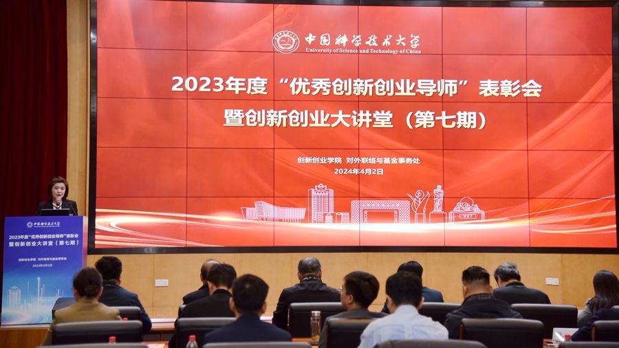 4月2日下午,中国科学技术大学2023年度“优秀创新创业导师”表彰仪式暨创新创业大讲堂(第七期)在东区物质科研楼隆重举行。我校优秀创新创业导师代表、“中鑫继远创新创业奖教金”获得者、校内相关部门负责人及创新创业学生项目团队代表等共同参加了活动。