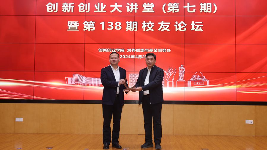朱东杰为张辉颁发“中国科大创新创业大讲堂”纪念牌并感谢他的精彩报告。张辉表示,作为我校创新创业导师,未来还会更多参与到我校创新创业教育工作中,为师生、校友的创新创业事业贡献力量。