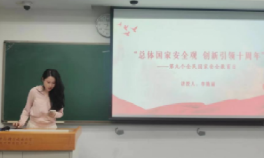 随后,安全委员李艳丽以“总体国家安全观 创新引领十周年”为主题进行国家安全知识教育。她强调,总体国家安全观是我们党关于国家安全理论的重大创新,对新时代面临的复杂安全挑战进行了科学分析研判。总体国家安全观是新时代我国国家安全的重要指导思想,它强调以人民安全为宗旨,以政治安全为根本,以经济安全为基础,以军事、文化、社会安全为保障,以促进国际安全为依托,走出一条中国特色国家安全道路。