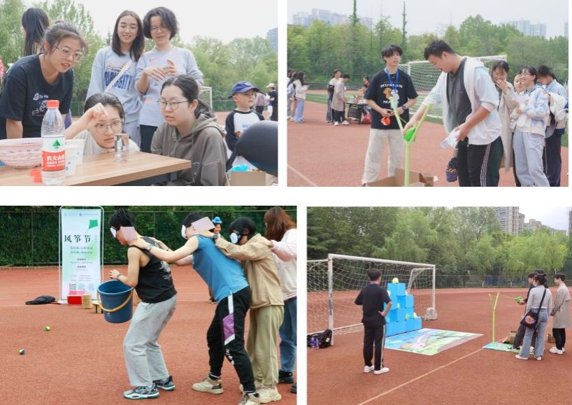 西区操场上支起了数个小摊位,每个摊位上都有不同的游戏环节,顺利完成游戏后可以得到一个印章,你写我猜、毛毛虫大作战、愤怒的小鸟、硬币博弈等游戏摊位前人头攒动。同学们在游戏中展现了出色的创造力和团队协作精神。弹弓投球、水中硬币、蒙眼合作、寻找沙包……同学们兴致勃勃地穿梭于摊位之间,留下一片片欢声笑语。