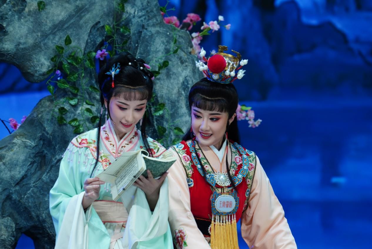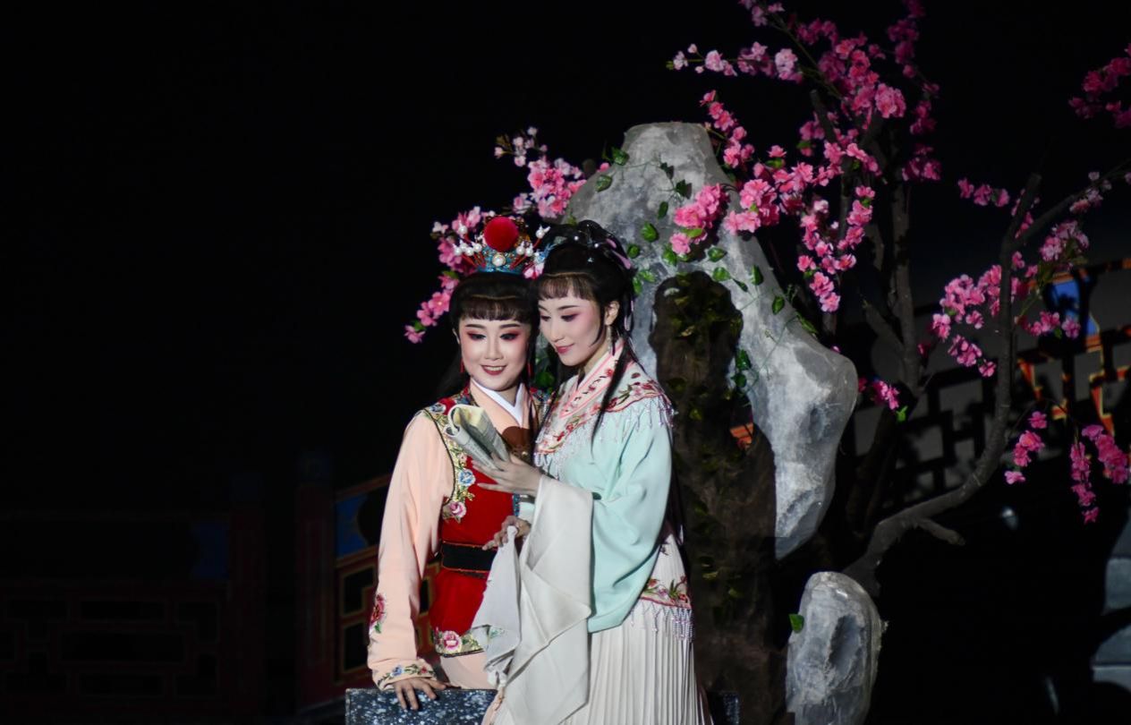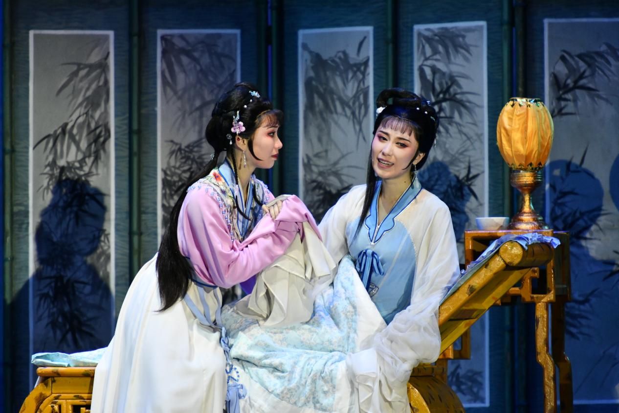“绕绿堤,拂柳丝,穿过花径。”含蓄的灵动清韵与演员凄美的形神相辅相成,只一句便让观众看到了那个“独倚花锄空洒泪”的葬花女子。“花谢花飞花满天,红消香断有谁怜。”熟悉的《葬花吟》伴随着吴语的低吟浅唱,完美地再现了黛玉葬花时孤独的心境,体现出她对美好有着不被世俗所理解的执念。此情此景,又有谁能不为这满地的残红而扼腕叹息呢?一句“侬今葬花人笑痴,他年葬侬知是谁?”不仅唱哭了宝玉,也唱哭了台下的观众:时间无情、世事无常,又有几人能相伴一生?便是一生又何其短暂,所幸古典文学名著《红楼梦》流传下来了,大师们改编的越剧剧本流传下来了,我们才得以身临其境地感受这如泣如诉、肝肠寸断的故事。