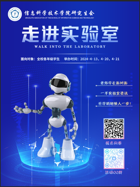 为进一步激发学生对科研的兴趣与热情,帮助低年级同学明确研究兴趣和未来规划,方便高年级同学挑选最符合自己研究和职业目标的实验室,信息科学技术学院联合校团委举办了首届“科学知新月”的首个子活动“走进实验室”。此次活动由信息科学技术学院研究生会、信息科学技术学院学生会、校研究生会承办。