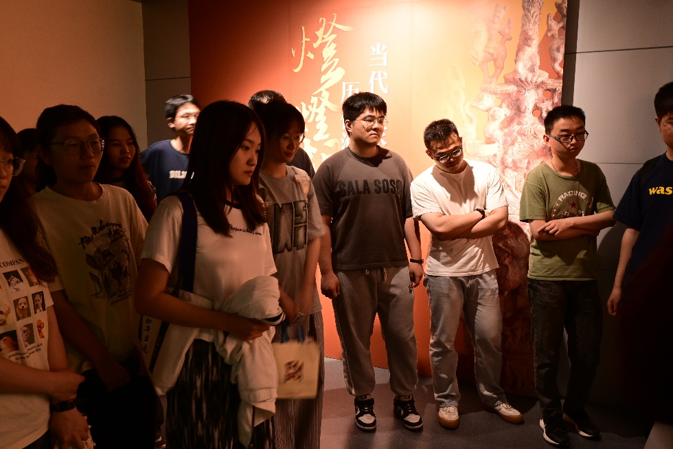 为进一步激发青年党员的爱国情怀,支部成员接着又来到“灯灯相传:当代名家画油灯暨历代油灯收藏展”。在展览中,同学们参观了中国从新石器时代到近代的百余件油灯,了解了中国油灯的历史发展和独特的油灯文化。油灯虽小,却是历史长河中使用时间最久远的照明器具,照亮了古人的漫漫黑夜,也见证了中华文化的灿烂光明。在中国文化中,油灯有着特殊的文化内涵,其燃烧自己、照亮别人的品格,与“两弹一星”科学家们热爱祖国、无私奉献的高尚追求不谋而合,让同学对“两弹一星”精神的科学内涵有了更深刻的认识。