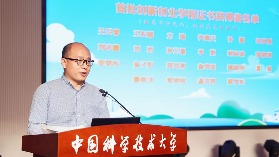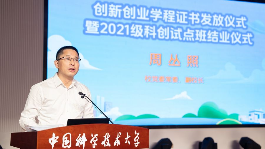 仪式上,周丛照发表了热情洋溢的讲话并为首批“创新创业学程证书”获得者颁发证书。他表示,在科创试点班“专创融合”“理实融合”“产教融合”培养模式下,同学们在创新创业学习方面都取得了丰硕成果。希望大家保持持续学习、勇于挑战自我、弘扬科大精神,以“硬核科技”创新创业为国家和社会创造更大的价值。
