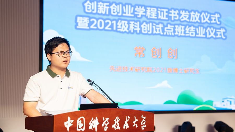 先进技术研究院2021级博士研究生常创创同学代表首批创新创业学程证书获得者发言。他分享了三年来创新创业学习的经历和感悟,表达了对创新创业教育的热爱以及对未来的憧憬。