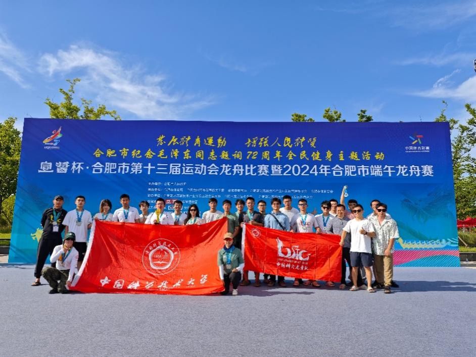 我校派出一支以龙舟队学生队员及教工队员共同组成的队伍,代表蜀山区龙舟队与县区组13支高水平队伍展开了为期一天的激烈角逐,分别以2分09秒08以及51秒19,在龙舟500米直道竞速、龙舟200米直道竞速两个项目中连夺两枚银牌。