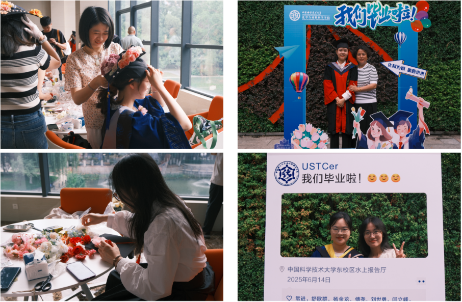 本次毕业典礼由学院副院长蒋彬教授主持,约150名硕博毕业生齐聚现场。典礼开始前,毕业生们积极参与互动环节:在拍照打卡区定格青春瞬间,在游戏区体验学士帽簪花装饰、手写心愿红牌等特色活动,现场洋溢着欢乐温馨的毕业氛围。