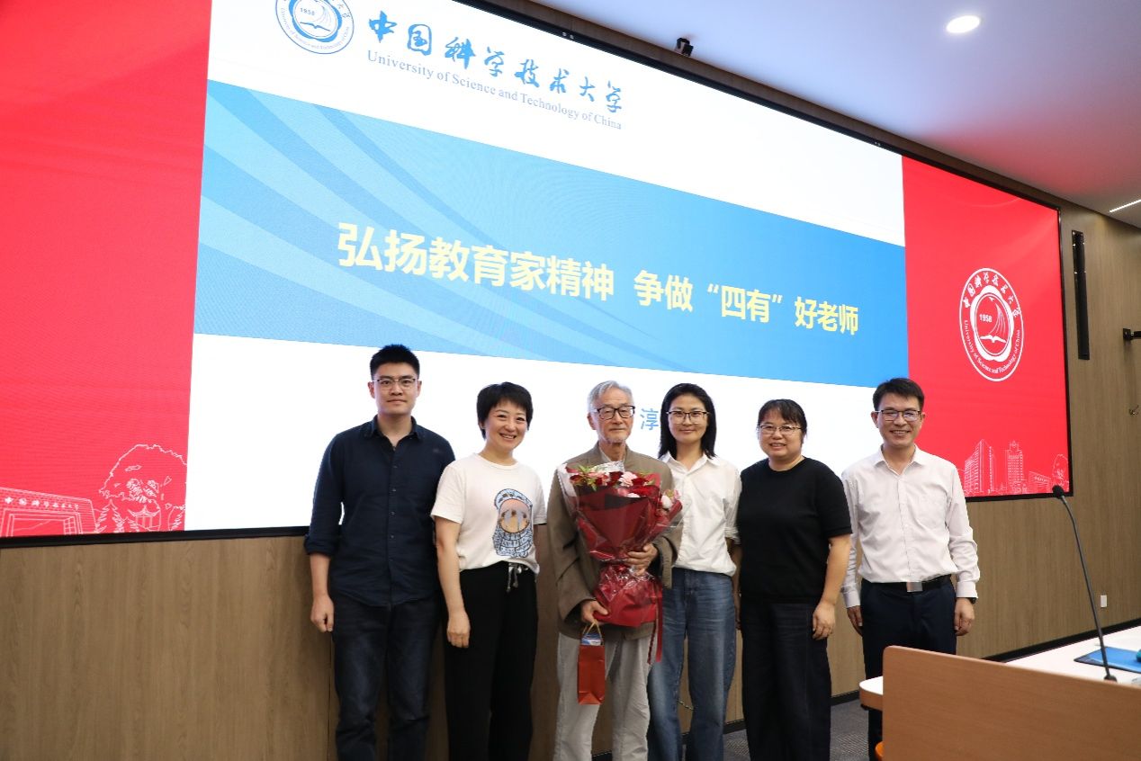 苏淳先生以《弘扬教育家精神,争做“四有”好老师》为题作报告,首先用一道概率题的人工智能解答为切入点启示大家教学重在思维培养,强调教师在教书育人过程中不可替代的作用。他指出,教育是帮助学生在掌握知识的过程中形成不断积累和反复思考的学习习惯。苏淳先生分享了在中国科大读研究生的经历。他表示,科大浓厚的学习氛围令他受益匪浅,他感恩于科大的人才培养和教育模式对自身产生的积极而又深远的影响。在科大任教40余年,苏淳先生传承了老一辈科学家和教育家的优良传统。对于指导研究生,他谈了三点感悟:一是要认真读书,读增长本领的书,不仅要读深读透,还要把书读活、长在心里;二是做研究离不开全面深入的调研,既要详细查阅资料,更要厘清问题的来龙去脉及发展趋势;三是要注重团队讨论,思想的火花往往是在相互、反复、深入的讨论中碰撞而成的。苏淳先生的报告赢得在场师生的阵阵热烈掌声。