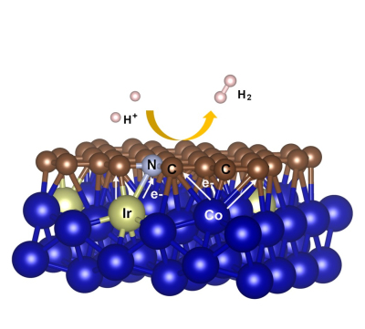近年来电解水制氢受到学术界广泛关注,寻找廉价高效的非铂电催化剂成为时下研究热点。作为当下“明星材料”的石墨烯具有导电性好、耐腐蚀等优点,近年来科研人员致力将其开发为高活性酸性析氢电催化剂,然而很多碳基催化剂的活性与贵金属相比还有很大的差距。如何将石墨烯碳基材料开发成高活性电催化剂是一个热点课题。近日,中国科学技术大学合肥微尺度物质科学国家研究中心和化学与材料科学学院材料系陈乾旺教授课题组以贵金属铱掺杂的金属有机框架材料作为前驱体,一步煅烧制备了氮掺杂的类石墨烯层包裹铱钴合金核壳结构材料,在酸性电解质析氢反应中表现出高活性和高稳定性。该研究成果1月12日发表在《先进材料》杂志上(Advanced Materials 2018, doi: 10.1002/adma.201705324),论文的共同第一作者是博士研究生江鹏、陈继堂和王长来,他们分别对论文的实验和理论计算部分作出了贡献。