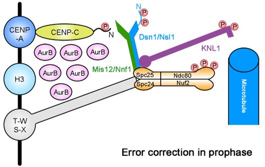 细胞通过有丝分裂将姐妹染色单体均等分配到两个子细胞,是细胞遗传信息准确传递的关键机制,对于维持基因组稳定性具有重要意义,有丝分裂异常将导致多倍体细胞的产生,进而引发肿瘤等多种疾病。动粒与微管的正确连接是细胞有丝分裂正常进行的保证。目前已经发现有多个外层动粒蛋白能被Aurora B磷酸化以激活纺锤体检验点,纠正动粒-微管的错误连接,使染色体正确分离。然而,是否有内层动粒蛋白能被Aurora B磷酸化,在动粒-微管连接纠错过程中发挥作用此前尚不清楚。