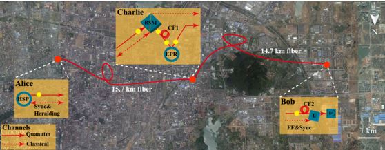 潘建伟小组首先和清华大学合作开发了适合光纤网络传输的时间相位纠缠光子源,然后通过发展皮秒级的远程光同步技术和使用光纤布拉格光栅进行窄带滤波,成功地解决了两个独立光子源之间的同步和干涉问题;接着开发了针对远距离光纤所造成的延迟和偏振涨落以及实验系统的稳定性等问题的主动反馈系统;最后利用中科院上海微系统所开发的超导纳米线单光子探测器,在合肥量子城域通信网络的30公里链路上实现了满足上述三要素的量子隐形传态实验。同日,《自然·光子学》也在线发表了加拿大Wolfgang Tittel小组在Calgary的光纤网络中利用独立源的量子隐形传态实验结果(无预先纠缠分发和前置反馈)。