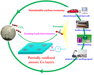 通过电催化过程将CO2还原成碳氢燃料分子不仅有助于降低CO2的负面影响,而且还可以获得甲烷、甲酸、甲醇等燃料。然而,电还原CO2过程的一个瓶颈是如何将高稳定性的CO2活化,这往往需要非常高的过电位;而过电位的存在不仅浪费大量的能源,还往往导致还原产物选择性的降低。