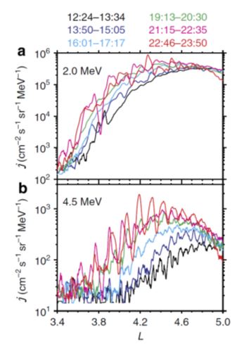 范艾伦辐射带是指近地空间中环绕地球的两层巨型“轮胎状”的高能粒子辐射层。外辐射带包含能量为~MeV的相对论电子,分布在距离地心3-8个地球半径的广阔空间区域。这些相对论电子经常受到太阳活动的影响而发生剧烈变化,对在轨航空航天系统(包括军事,导航、通讯和气象卫星等)造成严重威胁。因此,研究辐射带相对论电子形成机制具有重要的科学和现实意义。