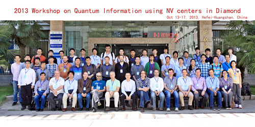 10月13-17日,由物理学院杜江峰教授自旋磁共振实验室主办的“2013年基于金刚石色心量子信息研讨会”(QDiamond 2013: Workshop on Quantum Information using NV centers in Diamond)在我校东区师生活动中心学术报告厅举行。德国斯图加特大学、乌尔姆大学,香港中文大学,美国加州大学伯克利分校、加州理工大学,瑞士苏黎世理工大学,澳大利亚墨尔本大学,中科院物理所,中科院武汉物数所等单位70多位在基于金刚石色心量子操控与精密探测领域的中外专家学者参加此次研讨会。国家自然基金委张守著处长专程来校参加了会议。