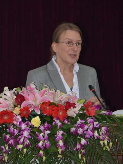 国际科技史学会及德国马普科学史研究所特派代表Martina Siebert博士在致辞中代表德国马普科学史研究所以及美国国际技术史学会向参会人员表示热情问候。她对马普科学史研究所的发展情况进行了简要的介绍,并代表研究所向中国的科学史同仁表达了进行进一步交流、合作的意愿。
